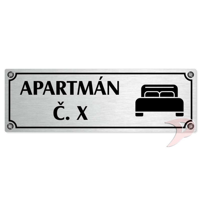 Apartmán č., 200x66mm, stříbrná popiska s imitacemi šroubků