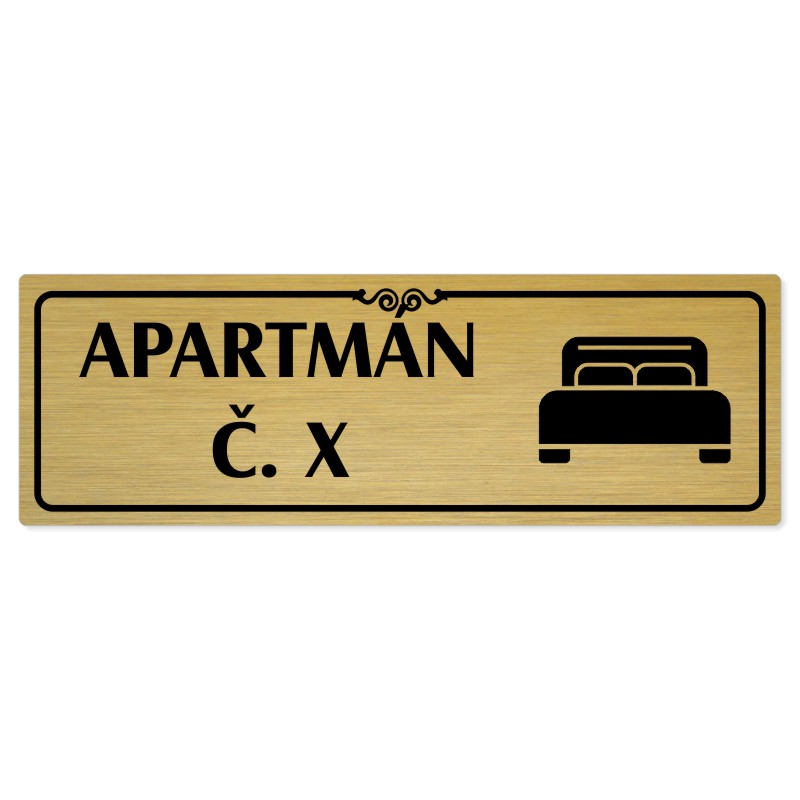 Apartmán č., 200x66mm, zlatá popiska s ozdobou uprostřed