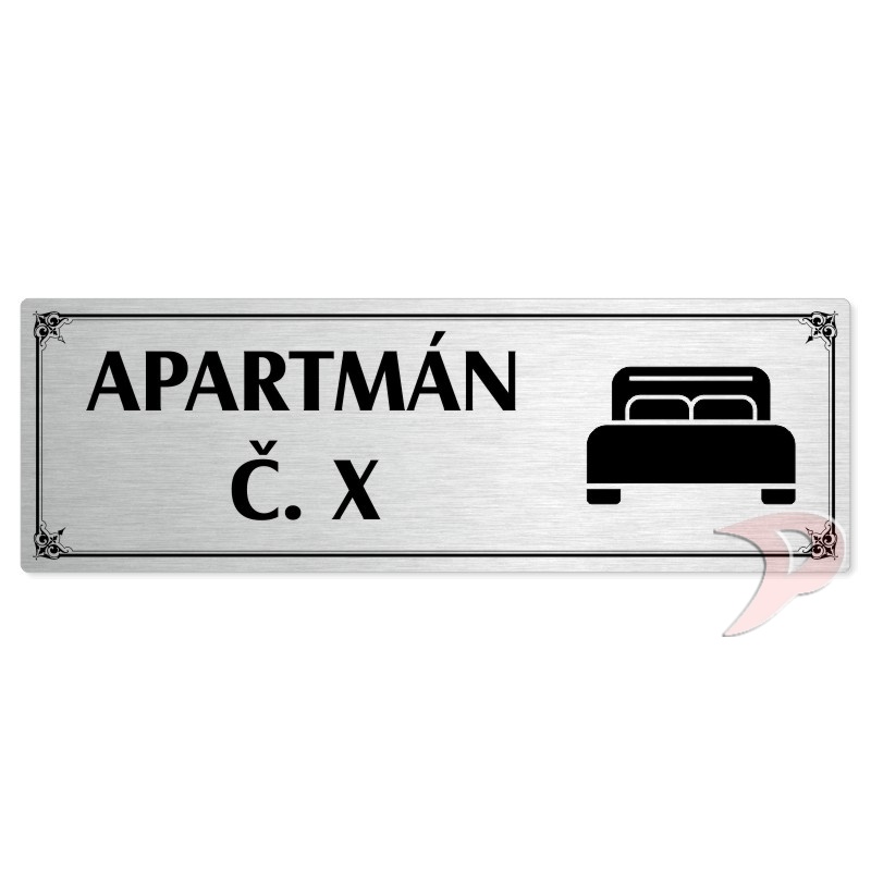 Apartmán č., 240x79mm, stříbrná popiska s okrasným rámečkem