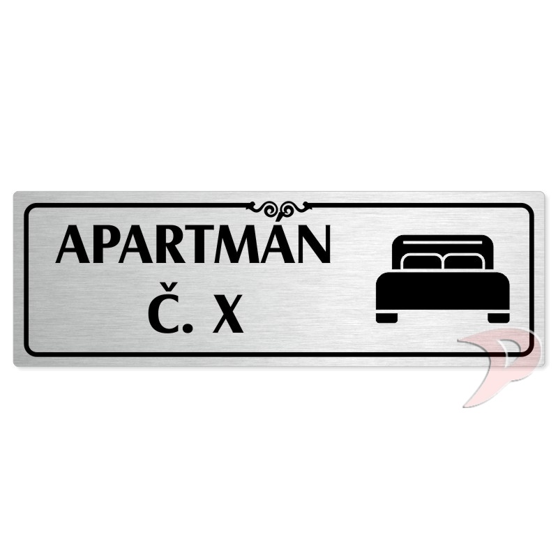 Apartmán č., 240x79mm, stříbrná popiska s ozdobou uprostřed