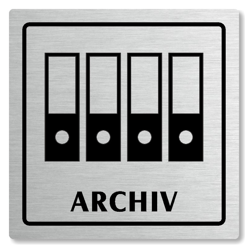 Cedulka na dveře “Archiv“ Vyrobeno z broušeného lakovaného hliníku o síle 0,6 mm Rozměr je 80x80mm, 100x100mm, 118x118mm a 148x148mm Povrch je pololesklý  Obrázek či text je tepelně-chemicky natištěn do materiálu, a nelze ho odstranit. Cedulka je z výroby podlepena oboustrannou  páskou pro snad... celý popis