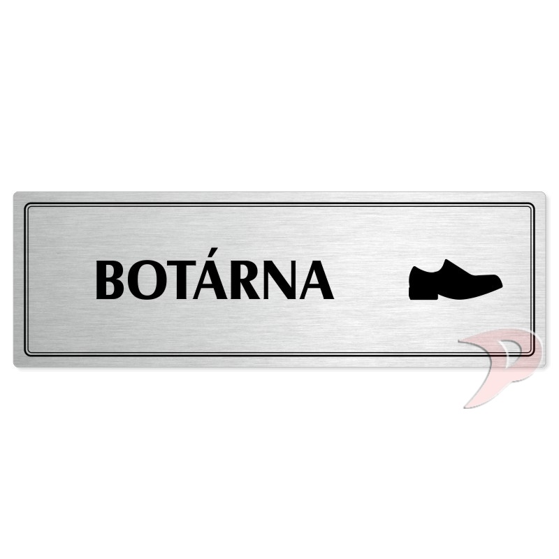 Popiska na dveře “Botárna“ Vyrobeno z broušeného lakovaného hliníku o síle 0,6 mm Rozměr je 200x66mm a 240x79mm Povrch je pololesklý  Obrázek či text je tepelně-chemicky natištěn do materiálu, a nelze ho odstranit. Cedulka je z výroby podlepena oboustrannou  páskou pro snadnou montáž. Požadovan... celý popis