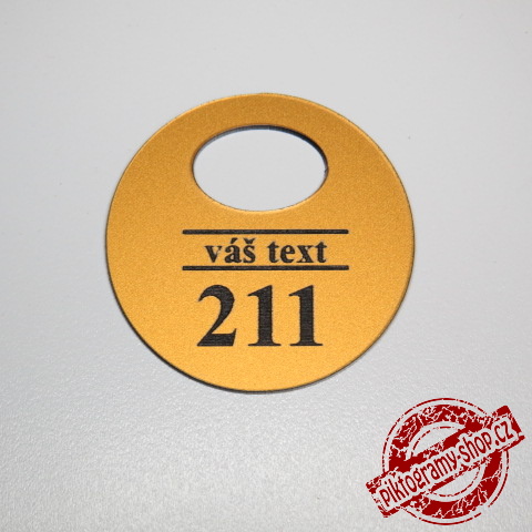 - Černá cedulka opatřena z jedné strany bronzovou barvou.