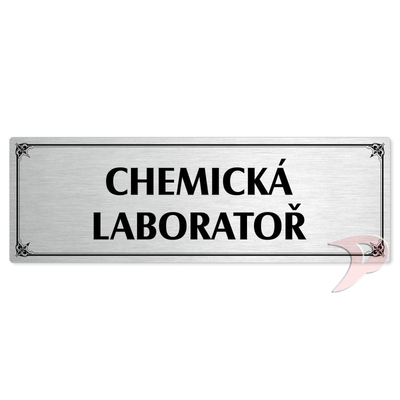 Chemická laboratoř, 200x66mm, stříbrná popiska s okrasným rámečkem
