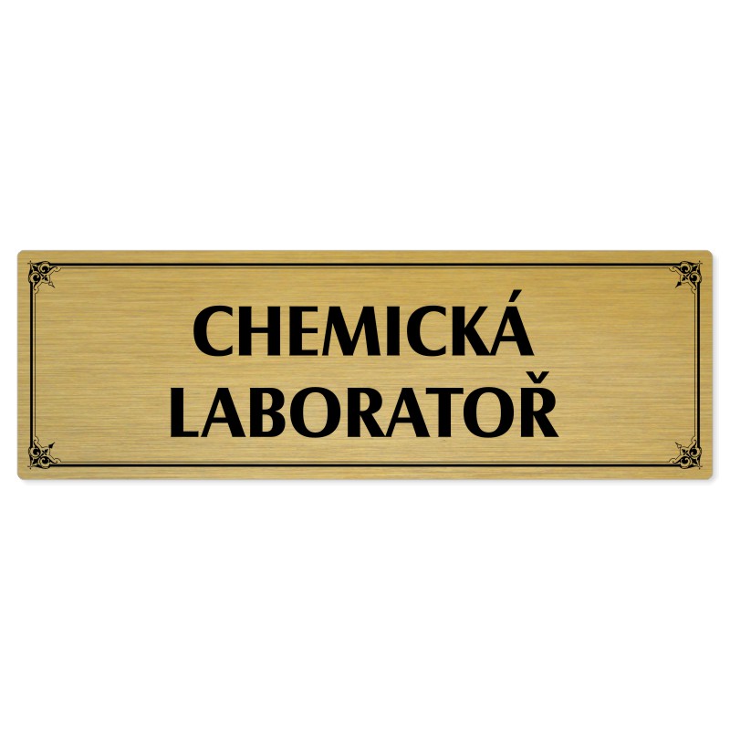 Chemická laboratoř, 200x66mm, zlatá popiska s okrasným rámečkem