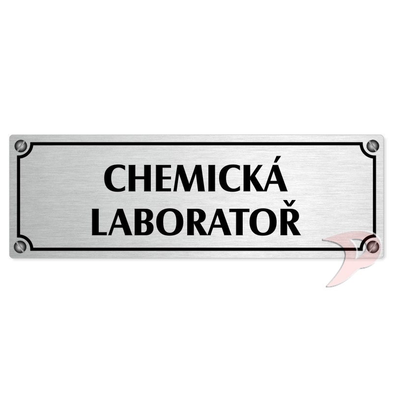 Chemická laboratoř, 240x79mm, stříbrná popiska s imitacemi šroubků