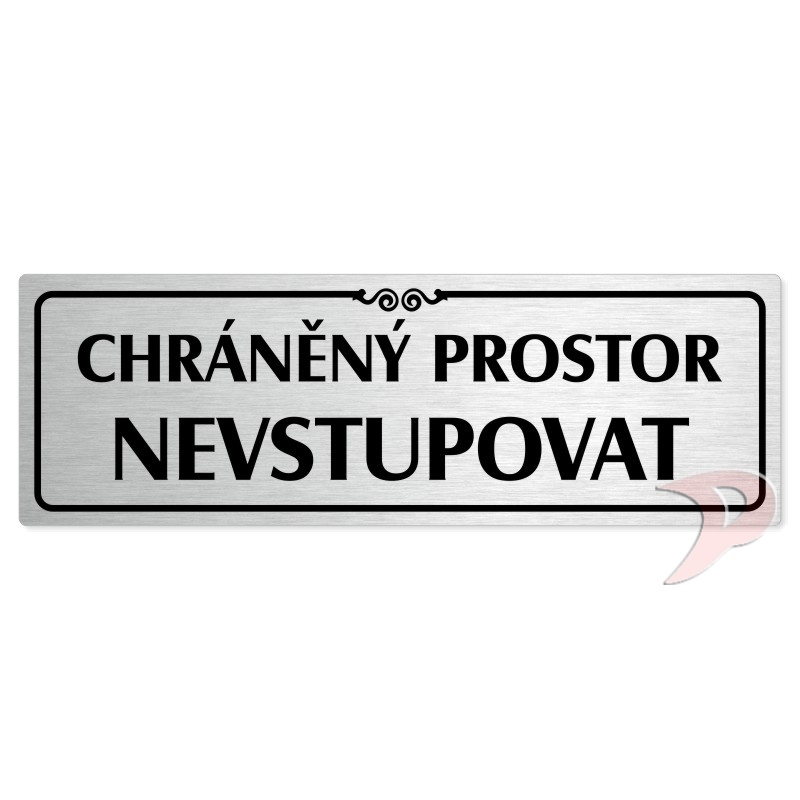 Chráněný prostor, 200x66mm, stříbrná popiska s ozdobou uprostřed