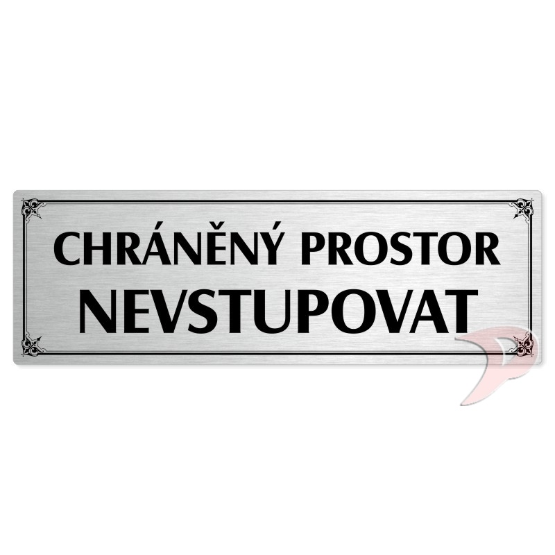 Chráněný prostor, 240x79mm, stříbrná popiska s okrasným rámečkem