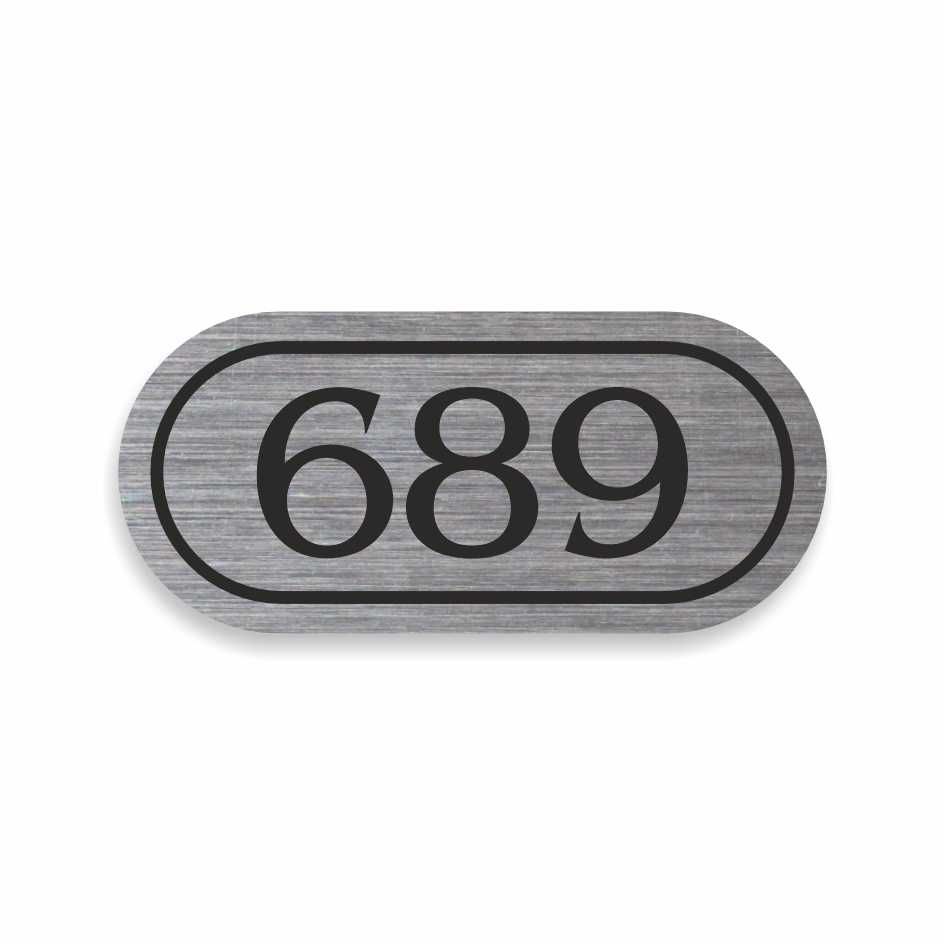 - Číslo na dveře vyrobené ze stříbrné samolepky s broušeným povrchem.