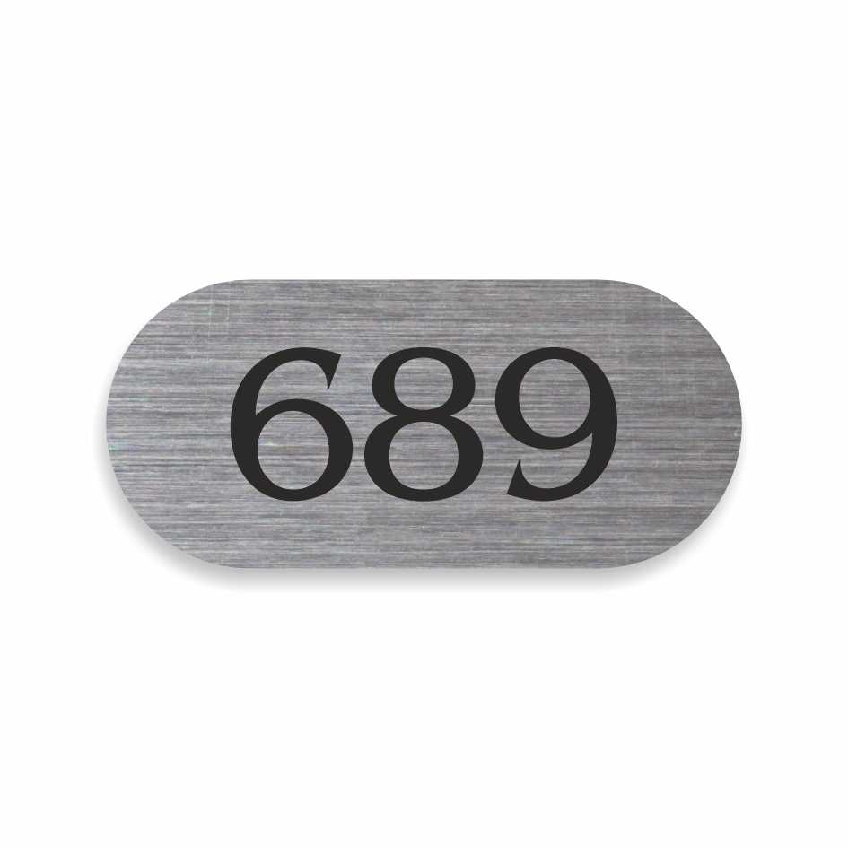 - Číslo na dveře vyrobené ze stříbrné samolepky s broušeným povrchem.