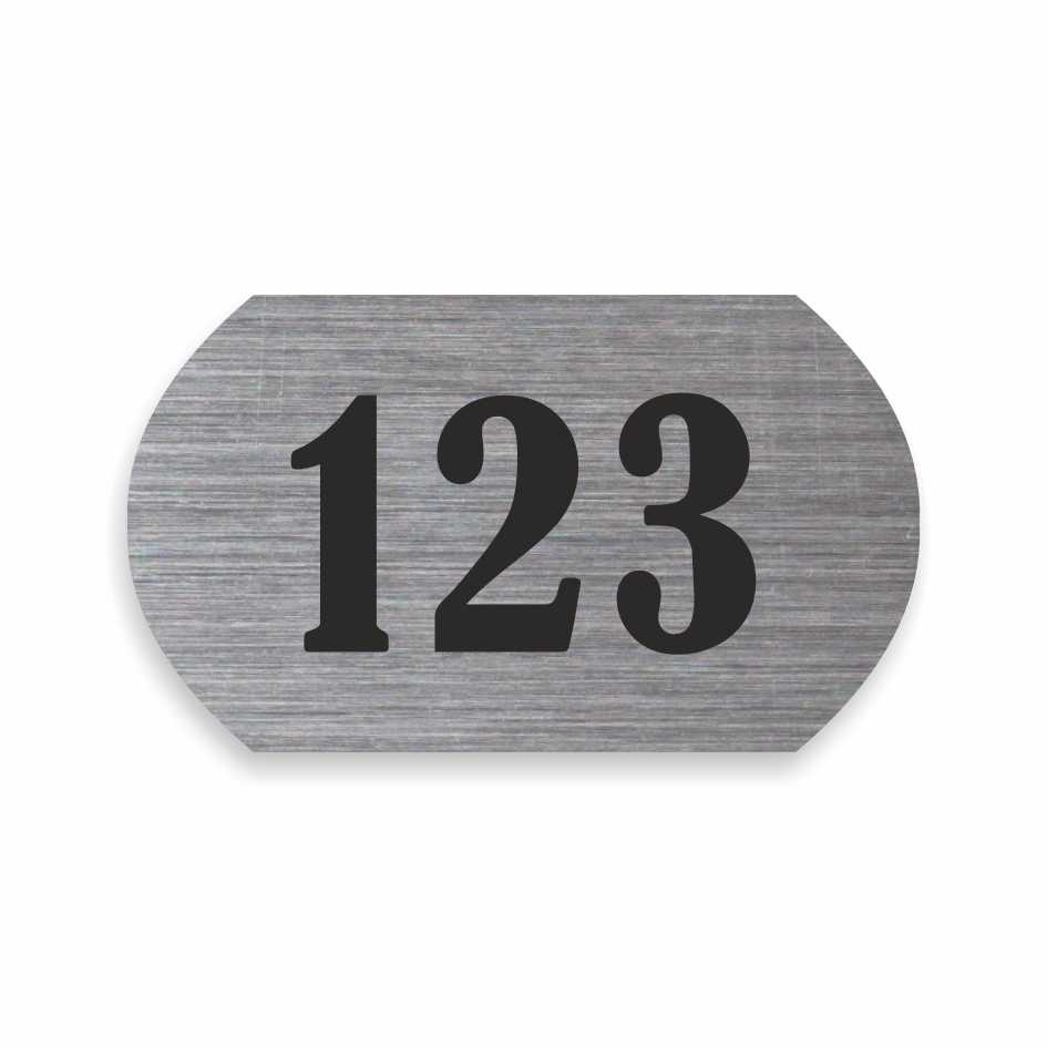 - Číslo na dveře vyrobené ze stříbrné samolepky s broušeným povrchem.