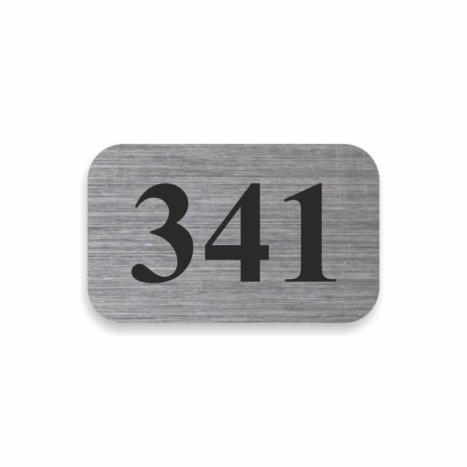 - Číslo na dveře vyrobené ze stříbrné samolepky s broušeným povrchem.