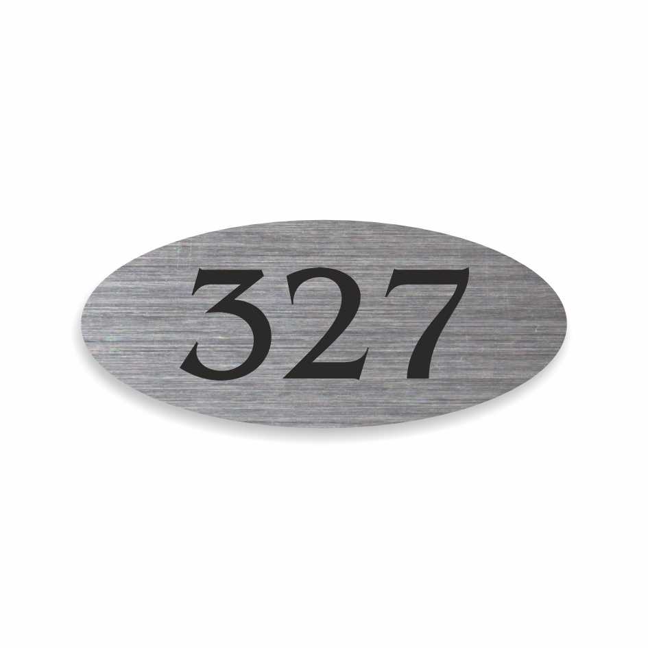 - Číslo na dveře vyrobené ze stříbrné samolepky s broušeným povrchem.