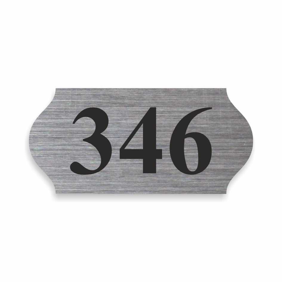 - Číslo na dveře vyrobené ze stříbrné samolepky s broušeným povrchem.