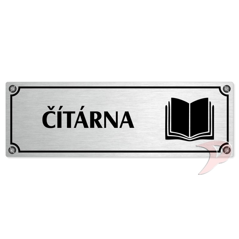 Čítárna, 200x66mm, stříbrná popiska s imitacemi šroubků