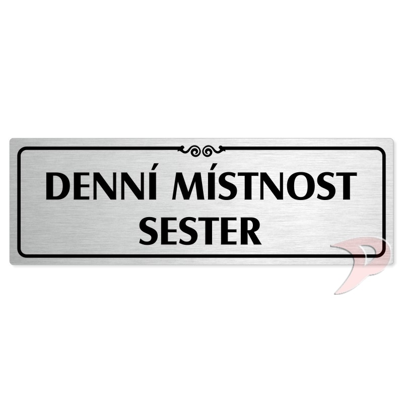 Denní místnost sester, 200x66mm, stříbrná popiska s ozdobou uprostřed238 Kč197 Kč bez DPH