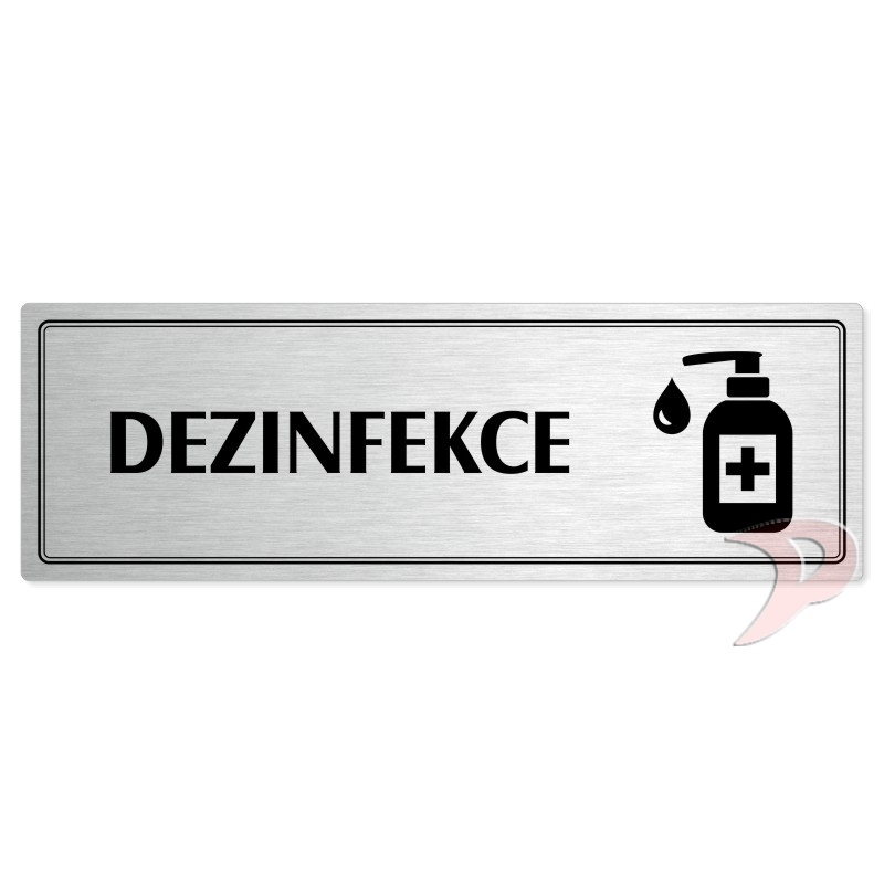 Dezinfekce, 240x79mm, stříbrná popiska s dvojtým rámečkem