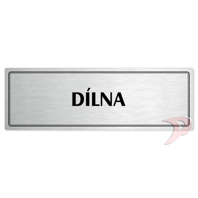 Dílna, 200x66mm, stříbrná popiska s dvojtým rámečkem