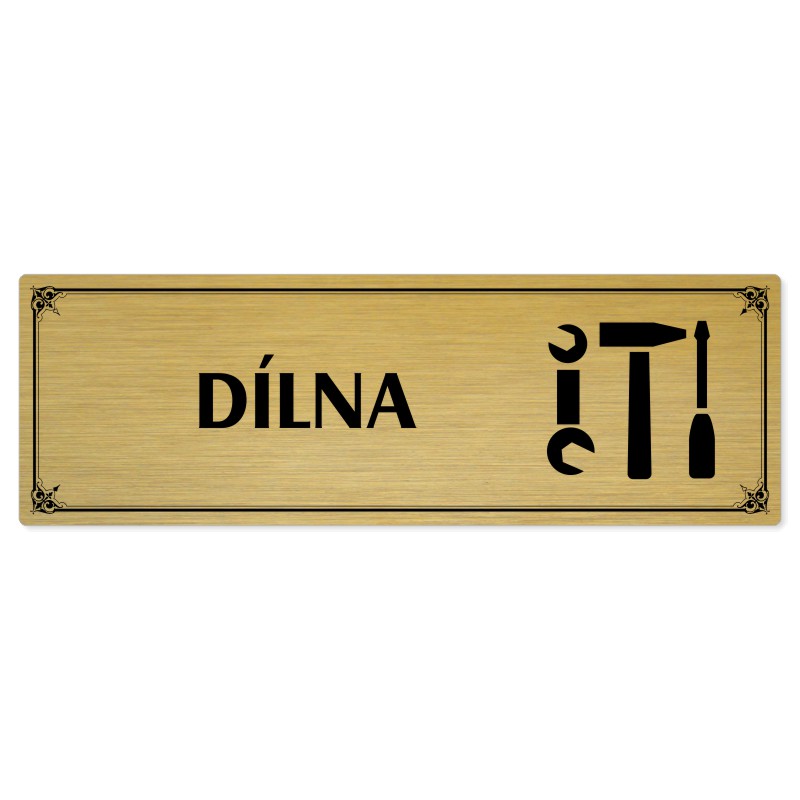 Dílna, 200x66mm, zlatá popiska s okrasným rámečkem