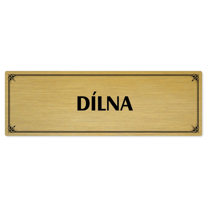 Dílna, 200x66mm, zlatá popiska s okrasným rámečkem