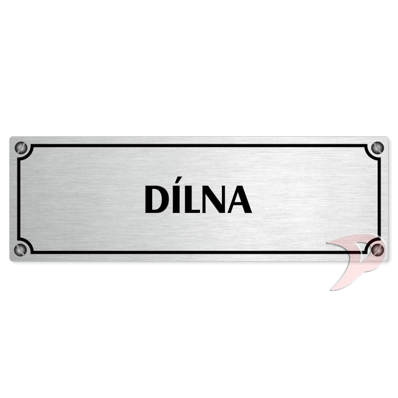 Dílna, 240x79mm, stříbrná popiska s imitacemi šroubků