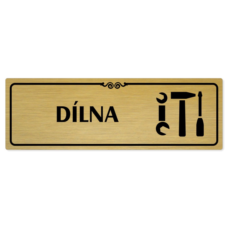 Dílna, 240x79mm, zlatá popiska s ozdobou uprostřed