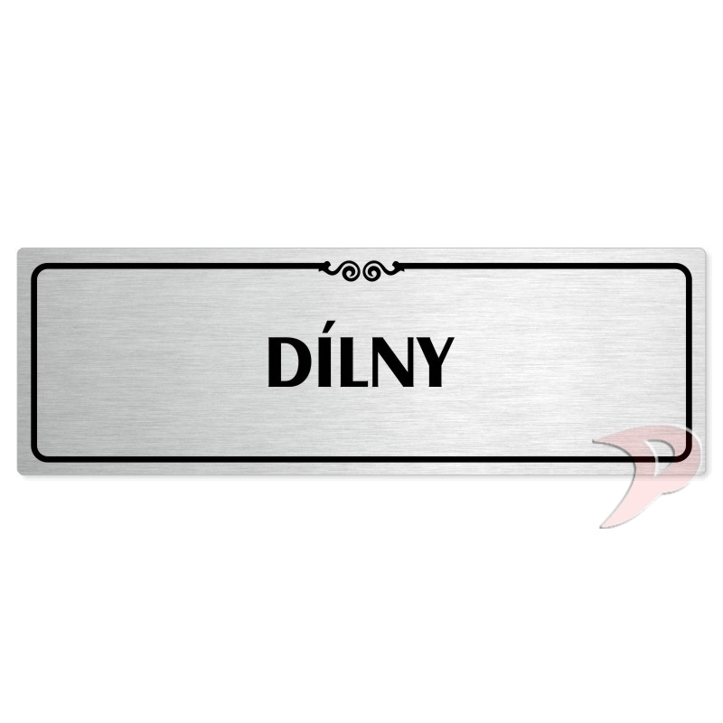 Dílny, 200x66mm, stříbrná popiska s ozdobou uprostřed