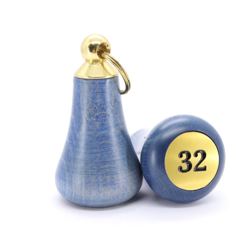 Dřevěná hotelová klíčenka, hruška, modrá + číslo zdarma281 Kč/ ks232 Kč bez DPH