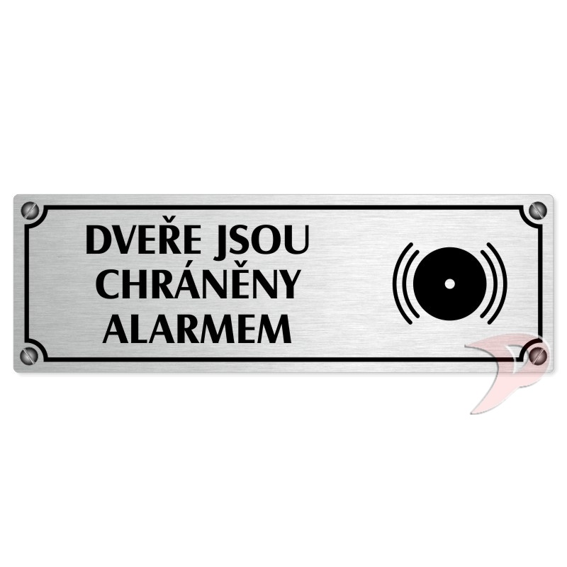 Dveře pod alarmem, 200x66mm, stříbrná popiska s imitacemi šroubků
