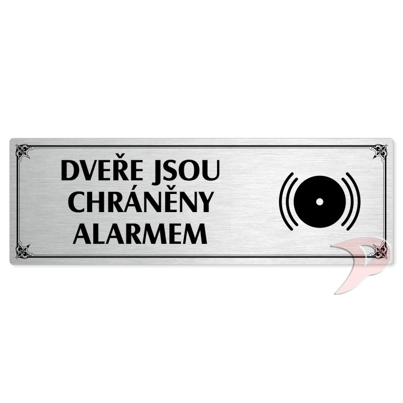 Dveře pod alarmem, 200x66mm, stříbrná popiska s okrasným rámečkem