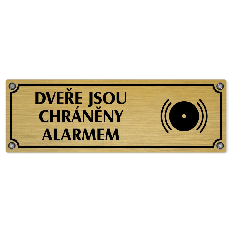 Dveře pod alarmem, 240x79mm, zlatá popiska s imitacemi šroubků