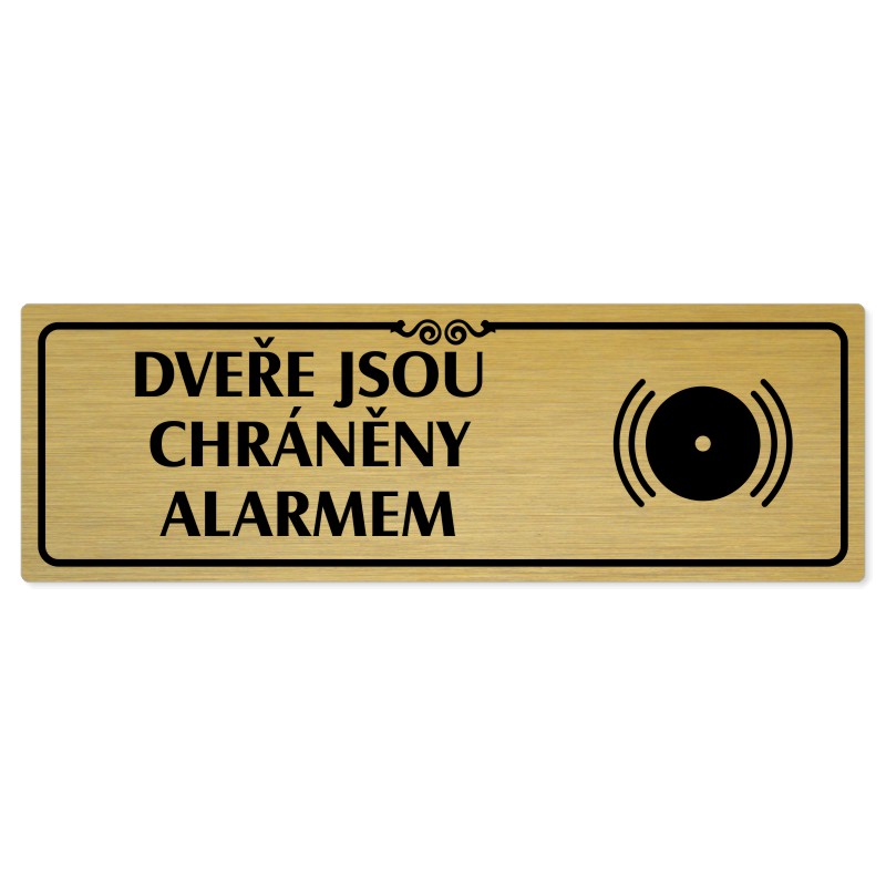 Dveře pod alarmem, 240x79mm, zlatá popiska s ozdobou uprostřed
