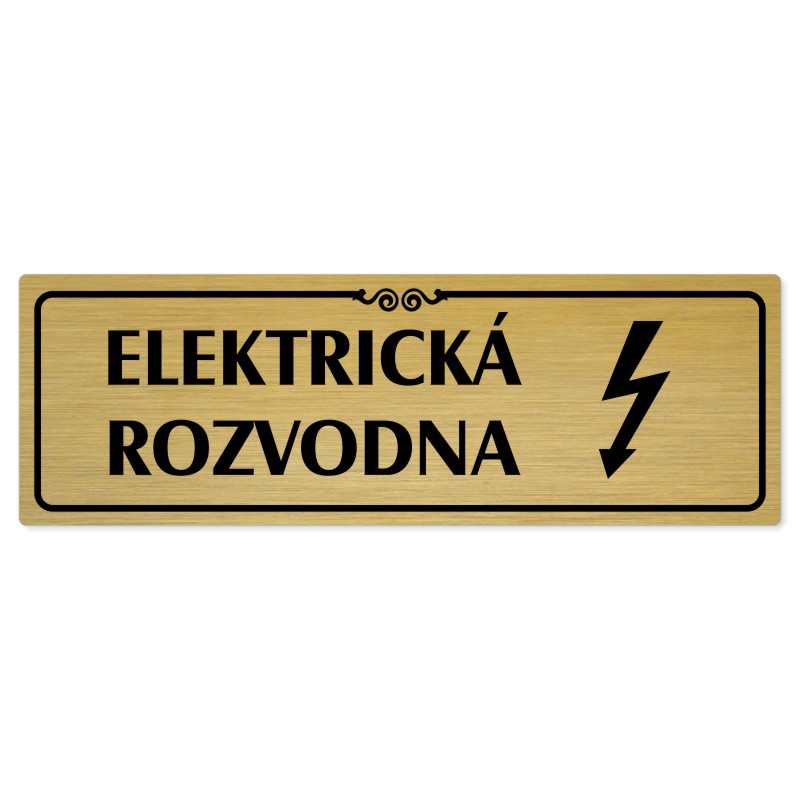 Elektrická rozvodna, 200x66mm, zlatá popiska s ozdobou uprostřed