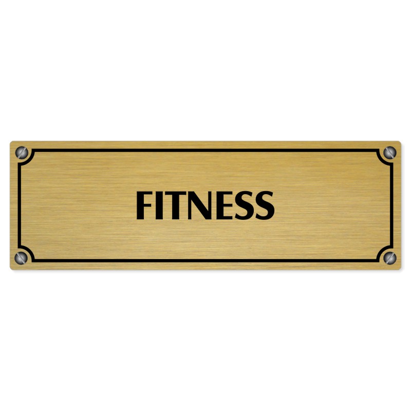 Popiska na dveře “Fitness“ Vyrobeno z broušeného lakovaného hliníku o síle 0,6 mm Rozměr je 200x66mm a 240x79mm Povrch je pololesklý  Obrázek či text je tepelně-chemicky natištěn do materiálu, a nelze ho odstranit. Cedulka je z výroby podlepena oboustrannou  páskou pro snadnou montáž. Požadovan... celý popis