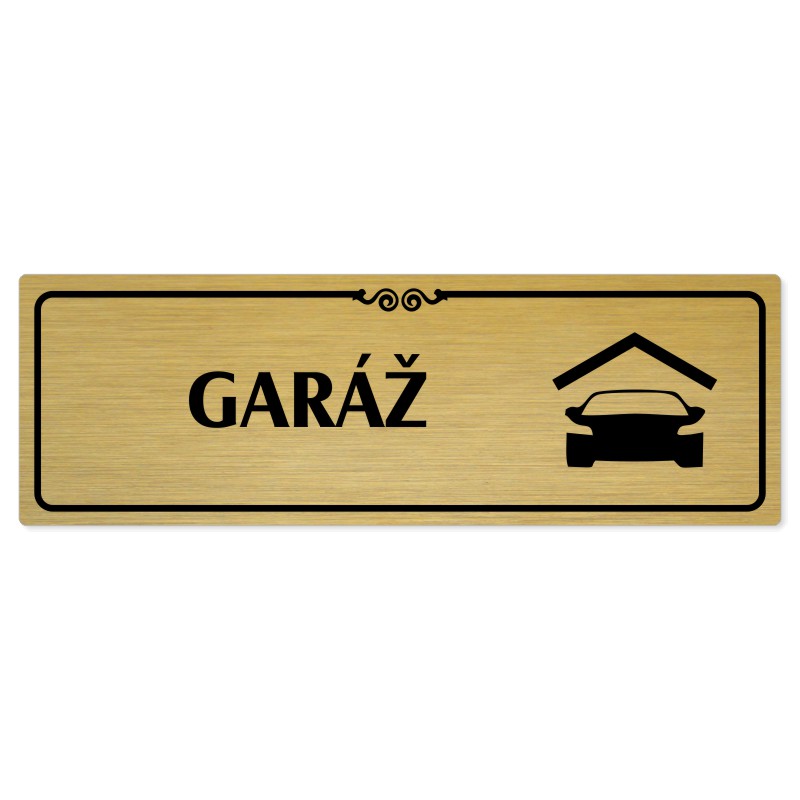 Garáž, 200x66mm, zlatá popiska s ozdobou uprostřed