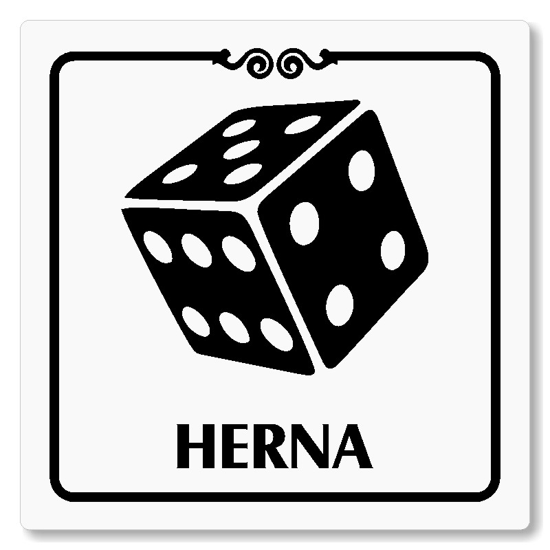 Cedulka na dveře “Herna“ Vyrobeno z broušeného lakovaného hliníku o síle 0,6 mm Rozměr je 80x80mm, 100x100mm, 118x118mm a 148x148mm Povrch je pololesklý  Obrázek či text je tepelně-chemicky natištěn do materiálu, a nelze ho odstranit. Cedulka je z výroby podlepena oboustrannou  páskou pro snadn... celý popis