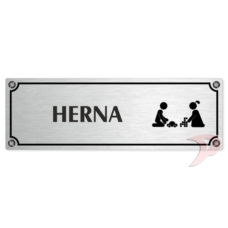 Herna, 240x79mm, stříbrná popiska s imitacemi šroubků