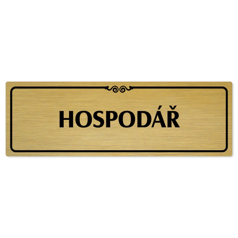 Hospodář, 240x79mm, zlatá popiska s ozdobou uprostřed