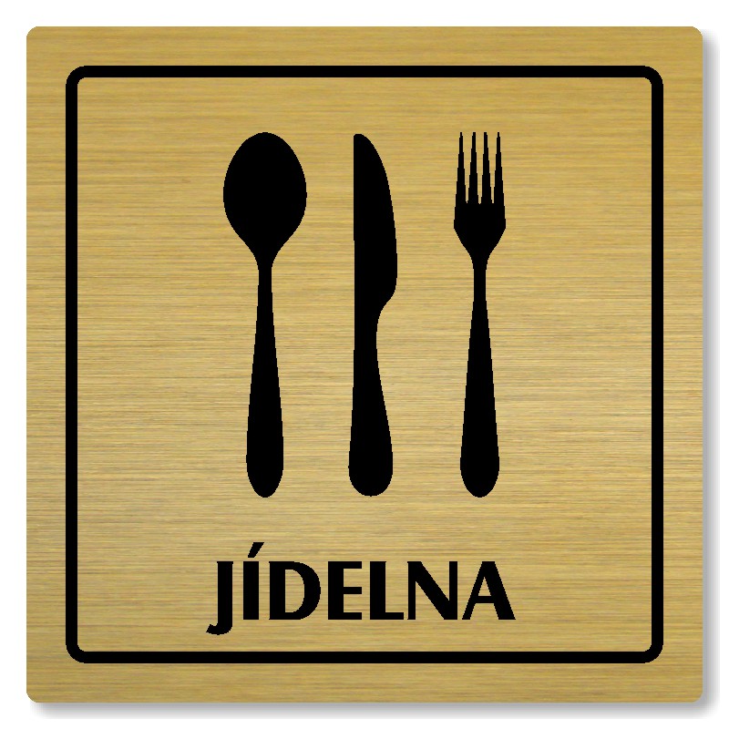 Cedulka na dveře “Jídelna“ Vyrobeno z broušeného lakovaného hliníku o síle 0,6 mm Rozměr je 80x80mm, 100x100mm, 118x118mm a 148x148mm Povrch je pololesklý  Obrázek či text je tepelně-chemicky natištěn do materiálu, a nelze ho odstranit. Cedulka je z výroby podlepena oboustrannou  páskou pro sna... celý popis