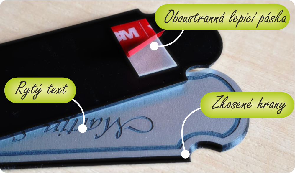 ?? Snadná údržba: Hladký povrch plastu se velmi snadno čistí. Stačí otřít vlhkým hadříkem a jmenovka bude opět jako nová.