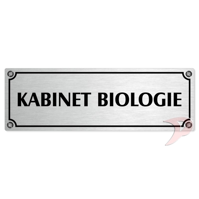 Kabinet biologie, 200x66mm, stříbrná popiska s imitacemi šroubků