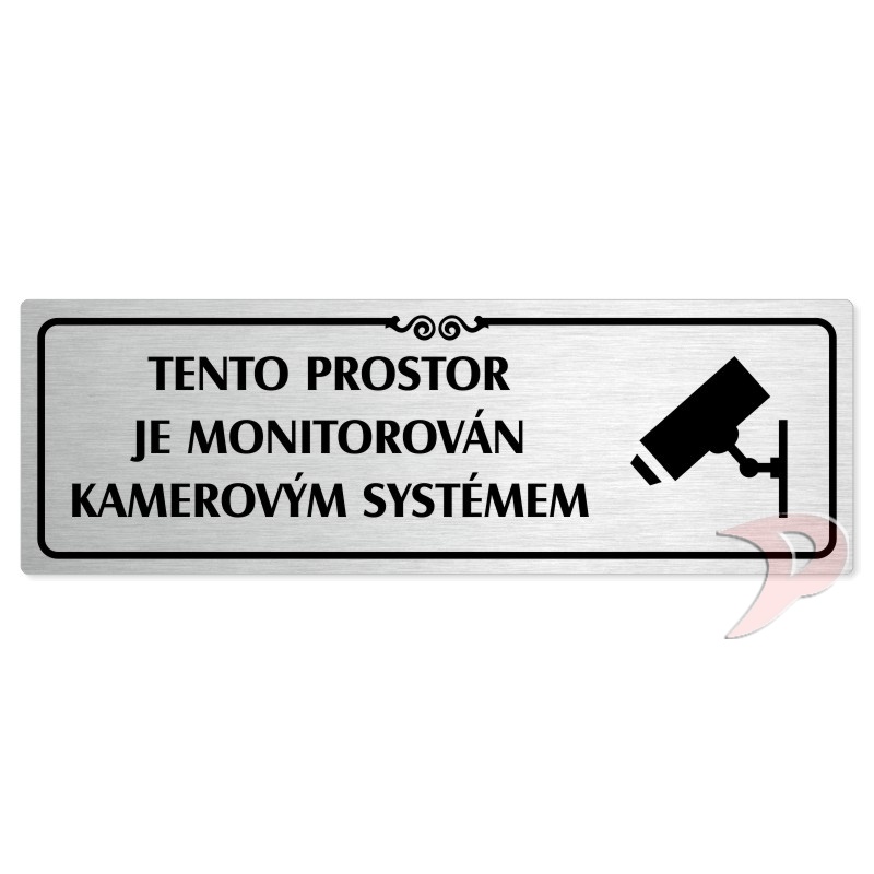 Kamera, 240x79mm, stříbrná popiska s ozdobou uprostřed
