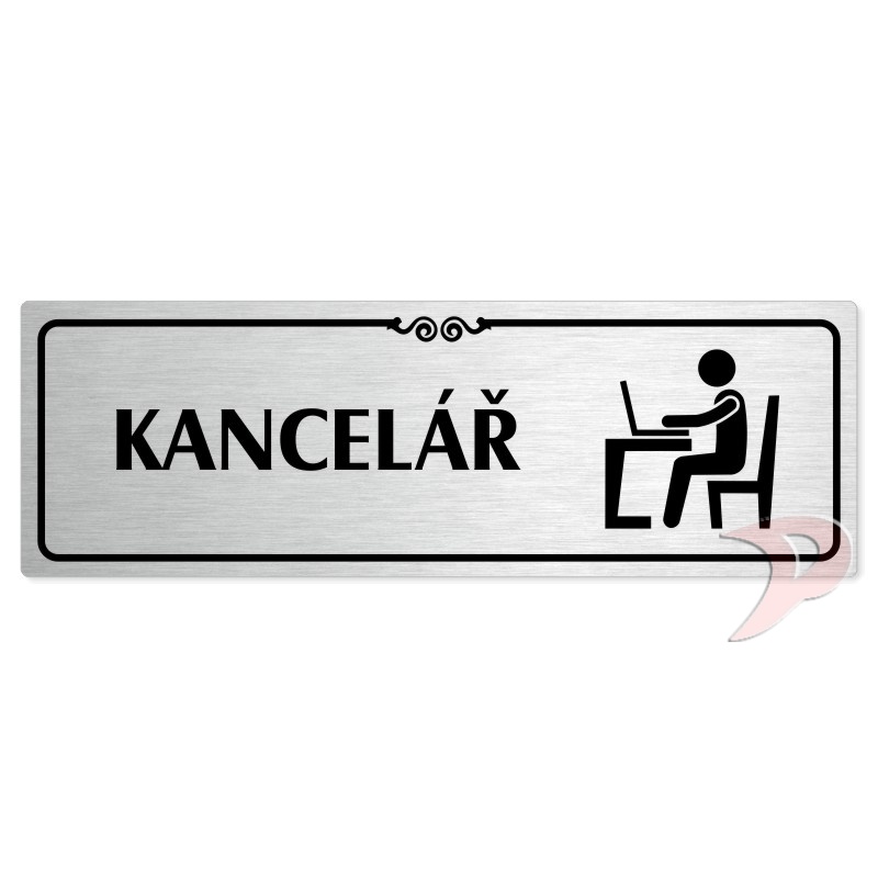 Kancelář, 200x66mm, stříbrná popiska s ozdobou uprostřed