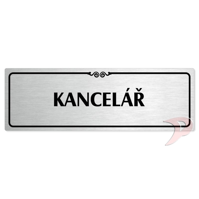 Kancelář, 200x66mm, stříbrná popiska s ozdobou uprostřed