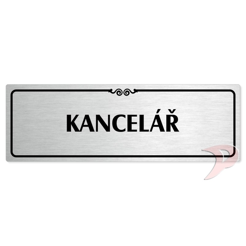 Kancelář, 200x66mm, stříbrná popiska s ozdobou uprostřed