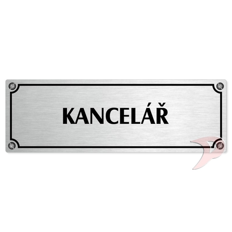 Kancelář, 240x79mm, stříbrná popiska s imitacemi šroubků