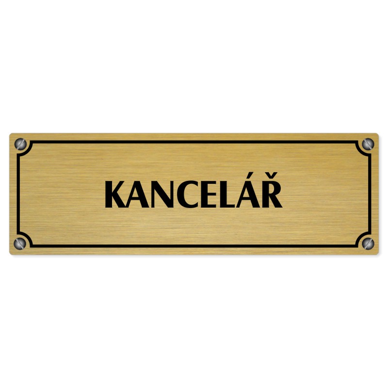 Kancelář, 240x79mm, zlatá popiska s imitacemi šroubků