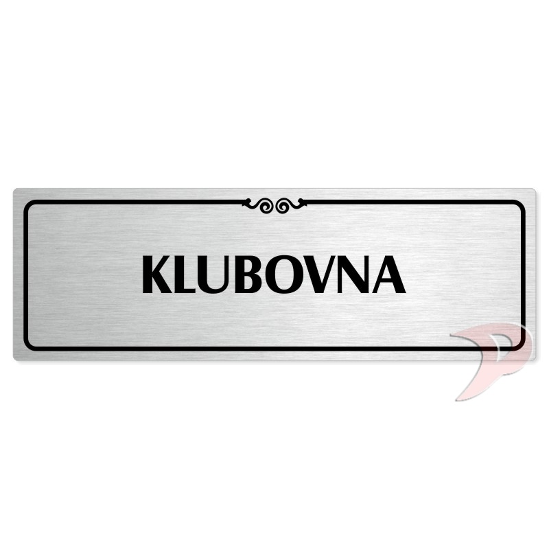 Klubovna, 200x66mm, stříbrná popiska s ozdobou uprostřed