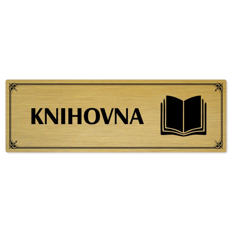 Knihovna, 200x66mm, zlatá popiska s okrasným rámečkem