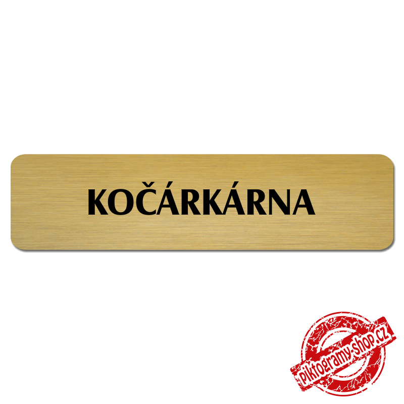 Popiska na dveře “Kočárkárna“  Vyrobeno z broušeného lakovaného hliníku o síle 0,6 mm Rozměr je 180x45mm (Florida) Povrch je pololesklý  Obrázek či text je tepelně-chemicky natištěn do materiálu, a nelze ho odstranit. Cedulka je z výroby podlepena oboustrannou  páskou pro snadnou montáž. Požado... celý popis